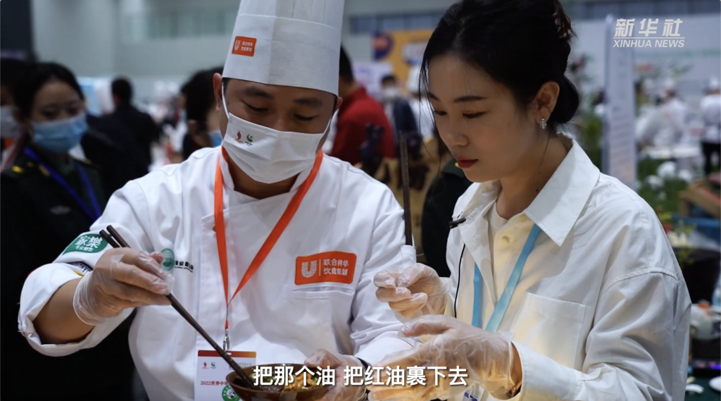 新华社小姐姐在大会现场带你感受川菜的“火辣”魅力。