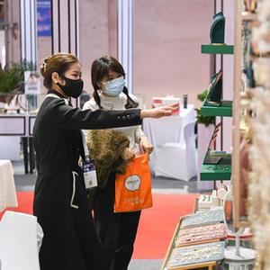 11月24日,客商在参观义乌市场建设40周年主题馆的一个饰品展区。新华社记者 黄宗治 摄