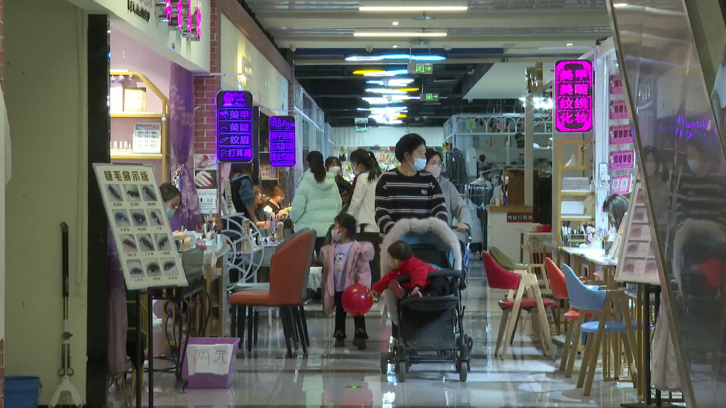 在宁夏吴忠市红寺堡区购物中心广场,各色摊位琳琅满目;商超里,前来购物的市民络绎不绝,珠宝、化妆品、服装等行业生意逐步向好。