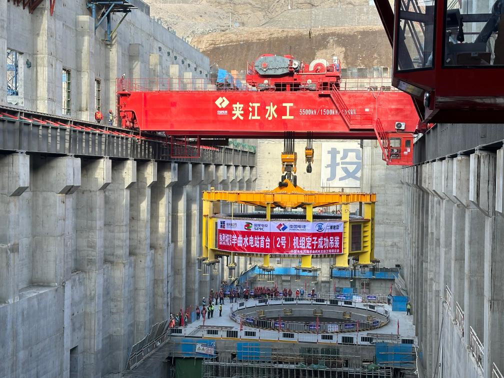 青海羊曲水电站首台机组定子吊装成功