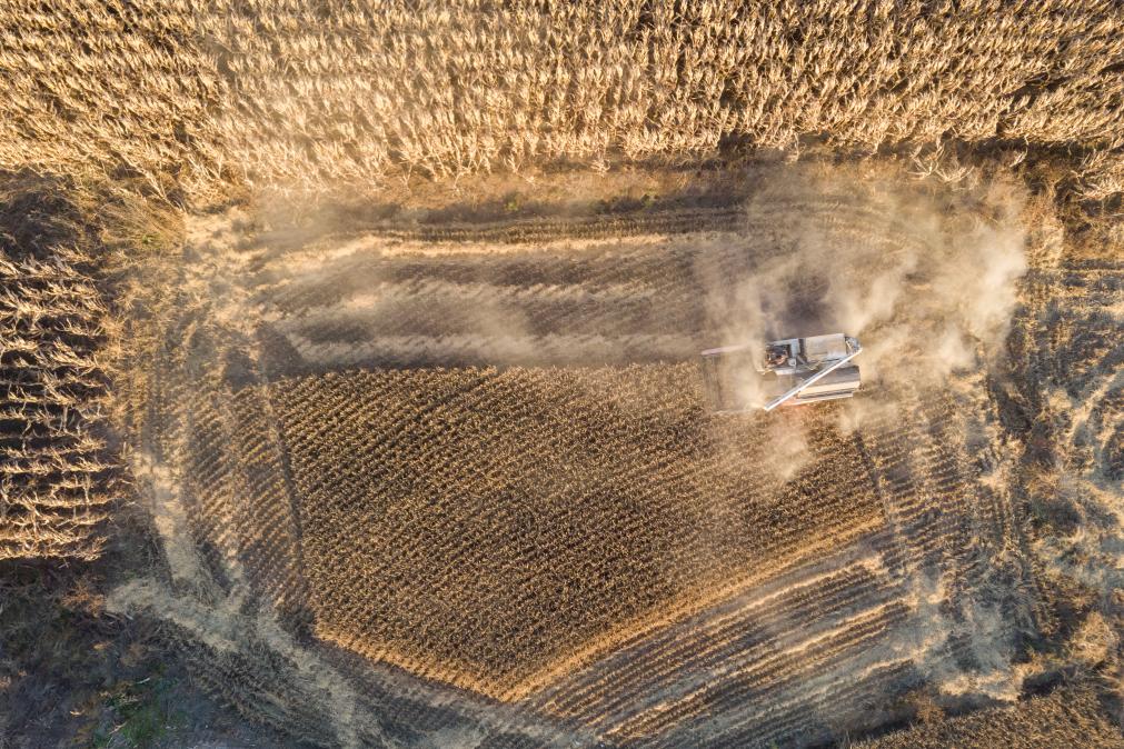 10月18日,黑龙江省尚志市河东朝鲜族乡,农民在收割水稻(无人机照片)。新华社记者 谢剑飞 摄
