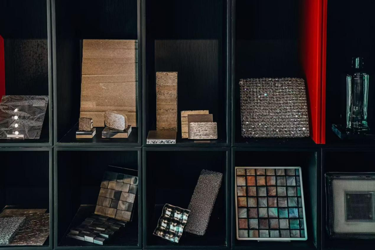 另一侧是共享工作空间和物料馆,存放着激发了设计大师创作灵感的珍贵纺织品原材料,例如用蜘蛛线提炼出来的织物,或国际著名大牌服装所专用的原材料。这里不定期会有精心策划的主题展览、讲座和读书分享活动。