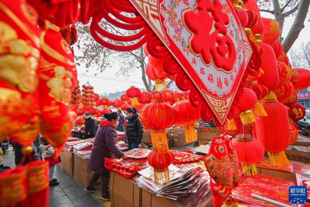 1月12日,顾客在山东省青州市一处年货市场选购春节饰品。新华社发(王继林 摄)